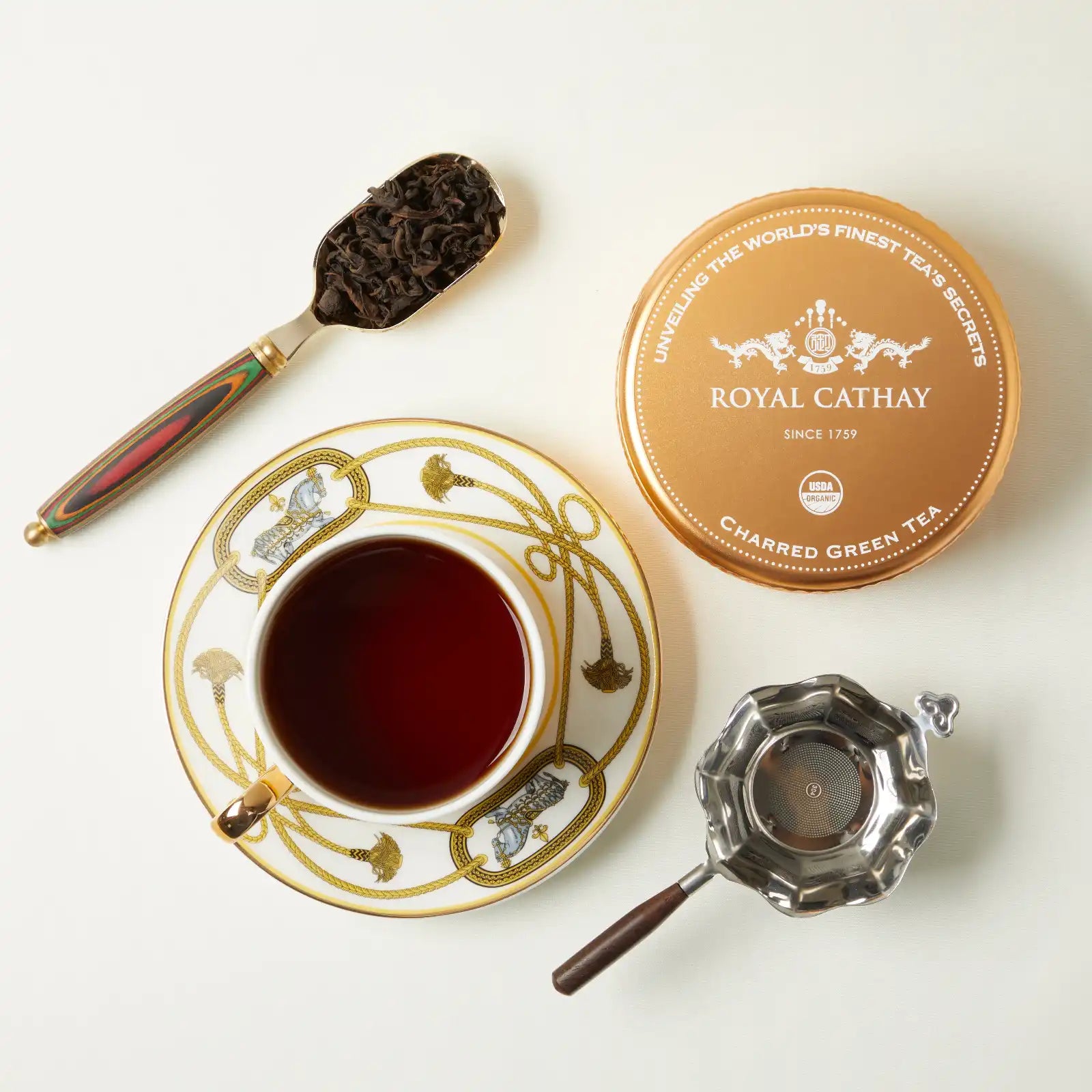 An innovative roasted green tea. High heat teases out cocoa depth and smoky complexity, creating a bold, layered expression of flavor.