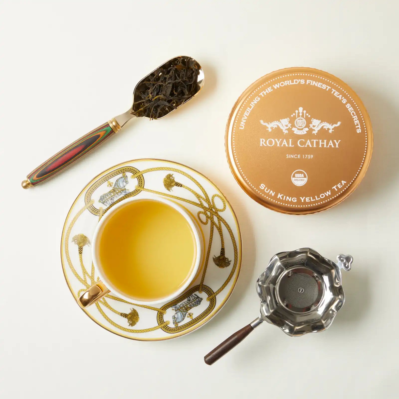 A rare yellow tea with velvety texture and honey-almond subtlety. Slow oxidation under carefully controlled humidity develops creamy layers and a gentle, sun-warmed depth.