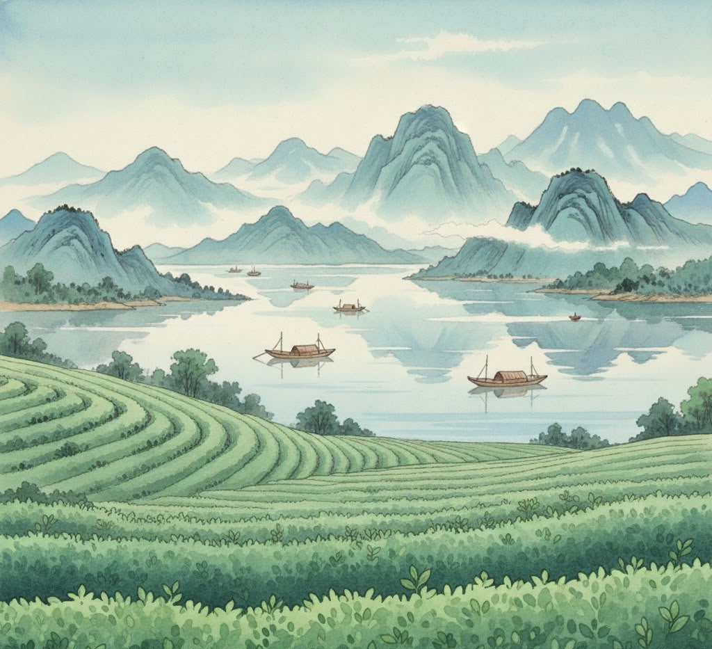 Evoking the vitality of spring, the Spiral Green Tea takes its name from the tightly coiled shape of its leaves. Grown near Dongting Mountain by Lake Tai in Jiangsu, this tea thrives in a humid, foggy climate, resulting in a unique leaf shape, a delicate form, and a vibrant flavor.
